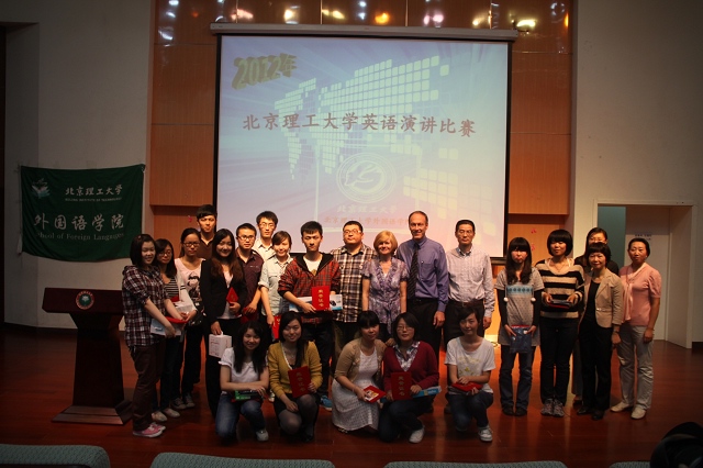 为了激发大家学习英语的兴趣,提高同学们的英语水平, 2012年9月27日,由beat365中文官方网站外国语学院、beat365中文官方网站教务处主办的“beat365中文官方网站英语演讲比赛决赛”在良乡校区综合教学楼演艺厅隆重举行。外国语学院常务副院长李京廉老师、外籍专家Greg kynast先生、Grace kynast女士、外国语学院刘鹏老师、张雅萍老师、郭瑞老师出席了比赛并担任嘉宾评委。外国语学院副书记副院长吴文君老师出席并全程观看了比赛。
