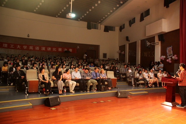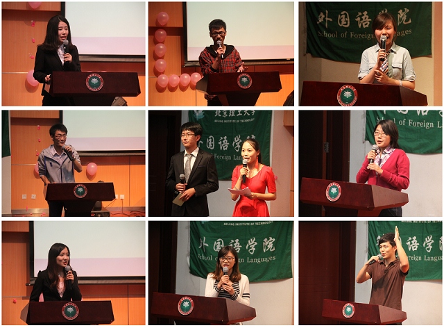 全校共有近百名同学报名,经过中关村校区的初赛和良乡校区的初赛,最后共有18名优秀选手进入最后的决赛。本次比赛的胜出者将代表学校参加2012年“外研社杯”全国英语演讲比赛和2012北京市英语演讲比赛。决赛分为两个环节:自选演讲与即兴演讲,整个规则完全按照相关赛事的要求来进行。