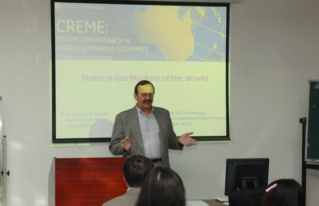 2012年10月13日,澳大利亚科廷大学科廷商学院Ronald D. Ripple教授应邀访问beat365中文官方网站管理与经济学院、能源与环境政策研究中心,并作主题为“Natural Gas Markets of the World”的学术报告。报告由管理与经济学院院长、能源与环境政策研究中心主任魏一鸣教授主持,部分研究生和校外研究人员参加了报告会。