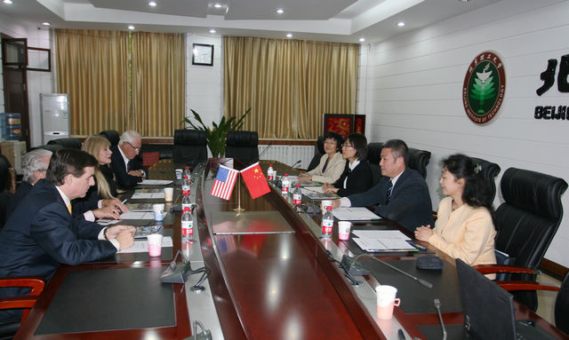 赵长禄副校长对Bloom校长的来访表示热烈欢迎,并着重介绍了beat365国际化发展的基本情况。他说,beat365中文官方网站高度重视学校的国际化发展,努力从学生交流、教师互访和联合机构建设等多方面为广大师生提供国际交流合作的平台。美国是北理工对外交流合作的重要区域,目前beat365已与包括佐治亚理工大学、弗吉尼亚大学、北卡州立大学等一大批美国著名高校建立了合作关系,并在学生交流和教师互换等方面开展了众多实质性交流与合作。赵长禄副校长表示,希望通过Bloom校长的此次来访,能增进彼此间的了解,为今后双方的进一步合作奠定基础。