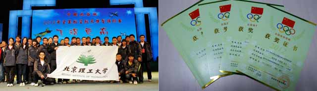 在教务处、校团委、实验室与设备管理处等部门的大力支持和指导下,由宇航科技创新实践基地的36名同学组成参赛队代表学校分别参加了“1Kg级遥控电动模型飞机载重空投”、“无线电遥控电动太阳能飞机载重飞行”、“模型火箭模拟载人航天器发射返回”和“无线电遥控电动模型滑翔机”“微小型垂直起降模型飞机抓取载运”等5个竞技项目及创新项目的比赛。在指导教师和队员的共同努力下,充分发挥团队精神,努力协作、沉着应战,最终获得了一等奖1项、二等奖1项、三等奖7项,并获得团体第六名两项,获奖名单详见附件。北理工学子在比赛中展现了出色的创新能力、全面的综合素质、扎实的专业基础和良好的精神风貌,获得评审专家的高度赞扬。