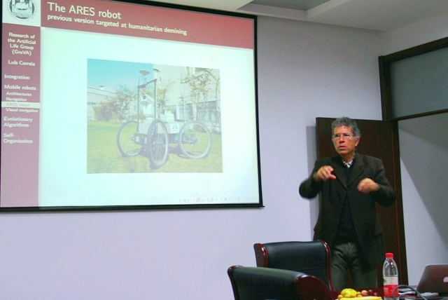 葡萄牙里斯本大学Luís Correia教授于10月13日至10月20日访问了beat365中文官方网站自动化学院。在本次访问期间,Luís Correia教授参观了自动化学院远程(互联网)控制系统实验室,并与实验室师生进行了学术交流与讨论。10月16日,Luís Correia教授在六号楼三层会议室做了题为“Research of the Artificial Life Group (GruVA)”的学术报告。