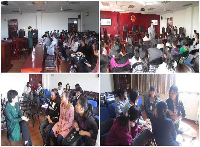 为了让2012级新生能够更好、更快的融入北理工、融入法学院、融入大学生活,法学院团校、学生会、模拟法庭协会联合组织开展了“如此爱法”新生教育系列活动,通过“借我一双法眼”青春榜样报告会、模拟法庭表演赛、专业教师交流会、师生联谊篮球赛、大学生涯规划报告会等各种形式新颖的新生入学教育活动让2012级新生学会“如此爱法”。