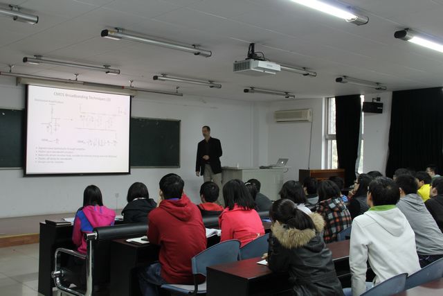 应信息与电子学院邀请,美国加州大学尔湾分校(University of California, Irvine)电子工程系系主任Michael Green教授于2012年10月17日到25日访问了beat365。除了与信息学院微电子技术研究所在CMOS集成电路设计科研方面进行了技术交流以外,Green教授为全系师生作了题为“Design Techniques for Multi-Giga-Bit-Per-Second CMOS Broadband Communication Circuits”的学术报告,报告介绍了他带领的科研小组在近几年做的一系列前沿性的研究。