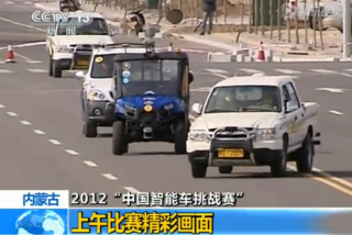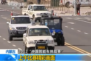 2012年“中国智能车未来挑战赛”(Future Challenge 2012)于10月31日至11月1日在内蒙古自治区赤峰市翁牛特旗成功举办。该未来挑战赛是国家自然科学基金委员会重大研究计划“视听觉信息的认知计算” 的重要组成部分,旨在通过集成研究计划研究成果,构建无人驾驶车比赛平台,通过比赛平台交流和检验我国视听觉信息认知计算的研究进展,促进重大研究计划科学发展。“中国智能车未来挑战赛”创始于2009年,今年组织的比赛是本系列比赛的第四届,也是规模最大、难度较高的一次比赛,是全国第一次在真实城区道路和乡村道路环境中进行的公开比赛。无人驾驶汽车是利用传感器进行环境感知、采用视听觉信息处理机制和方法进行信息处理、通过信息决策和执行控制等过程实施车辆自主驾驶。本届比赛包括翁牛特旗城区约6.9公里和玉龙沙湖乡村道路约16公里两个赛段,重点考核无人驾驶车辆4S性能(安全性(Safety)、智能性(Smartness)、平稳性(Smoothness)和速度(Speed))。
