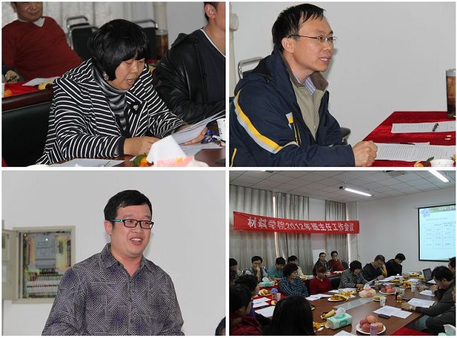 2012年11月9日,材料学院2012年班主任工作会议在材料学院报告厅举行。院党委书记陈鹏万、常务副院长刘颖、副院长李树奎、副书记副院长张舰月、全体系主任和2009级、2010级、2011级、2012级全体班主任出席会议,为学院的本科生教育工作的开展进行工作经验交流与探讨。会议由张舰月副书记主持。