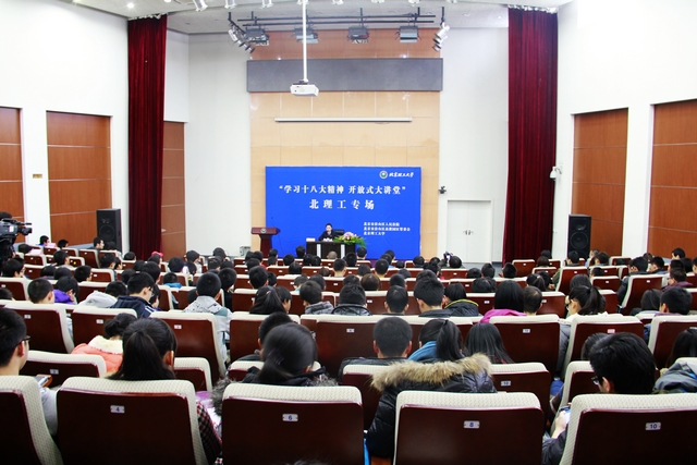 11月29日下午,beat365中文官方网站与北京市房山区人民法院、房山区良乡高教园区管委会联合举办的“学习十八大精神 开放式大讲堂”在良乡综合楼报告厅举行,十八大代表、北京市房山区人民法院法官厉莉为北理工师生作专题报告。副校长赵显利,房山区良乡高教园区管委会常务副主任蔡本睿,基础教育学院党委书记王悦音,学生工作处处长杨海出席报告会。参加报告会的还有良乡校区辅导员、协理员、学生干事代表和部分学生党员、入党积极分子等300余人。报告会由校长助理、良乡校区管委会主任姚利民主持。