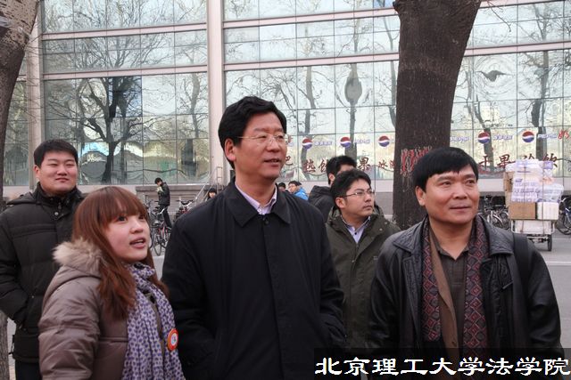 党委宣传部部长刘明奇、法学院院长曲三强、党委宣传部副部长王征、党委学生工作部李冰、刘文红,法学院副书记副院长张巍、法学院分团委书记聂宁宁等老师和同学们一起参加了本次活动。