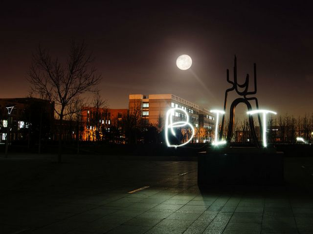 BIT之夜:皓月当空,穹似墨染,月凉如水,和光弄影,灯月相映,北理工之夜,恍如隔梦。 ——07111202 林宇涵