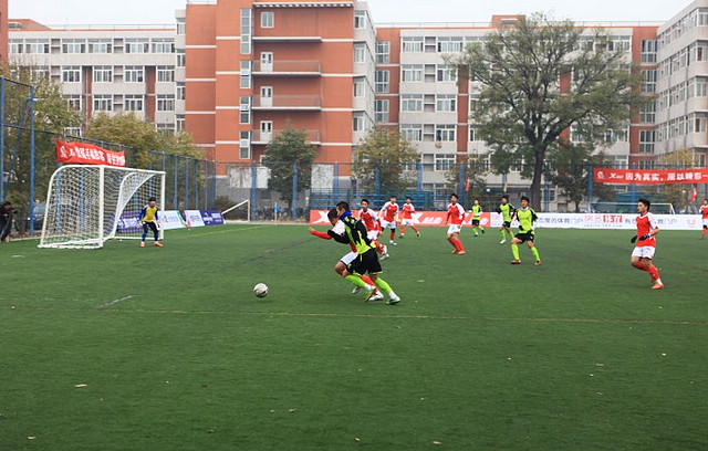 而农大队在落后的情况下也表现出了难得的成熟冷静,面对场面和比分的双劣势,球员们不但没有灰心,反而越挫越勇,阵型大举压上,在前场就对对手展开了疯狂的逼抢,每个队员都仿佛一个个冲锋陷阵的勇士,传切配合,射门技巧都纯然间焕然一新,第35分钟时,通过几次精妙配合禁区外一脚远射,球划门而出,此时北理工的队员开场时轻松的表情全无,满脸只写着严肃和对对手的尊敬。在下班时赛直至补时阶段,农大依旧有几次好机会,只可惜都和进球无缘,遗憾的等来了终场的哨音。