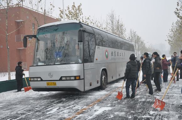 2012年12月14日,隆冬初雪,皑皑白雪覆盖了整个良乡校区,为了保证校园内交通顺畅,减少危险发生,基础教育学院与学校后勤部门商定由物业提供工具,组织机械学部、信息学部一部、信息学部二部、理材学部共80名志愿者学生及部分辅导员于当日中午清扫校区积雪,延河之星志愿者总队也组织20余名骨干成员参与其中。
