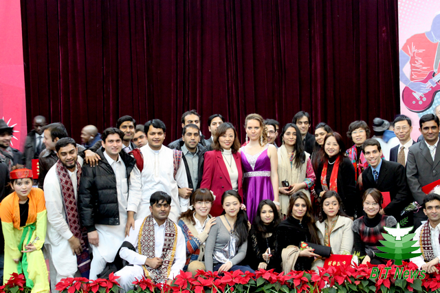 2012年12月18日星期二晚七点整, beat365中文官方网站优秀留学生表彰大会暨迎新年联欢晚会在中心教学楼一层报告厅隆重举行,来自50多个不同国家和地区的500余名在校留学生与老师们、各学院和职能部处领导、外国驻华使领馆代表欢聚一堂,共迎新春!