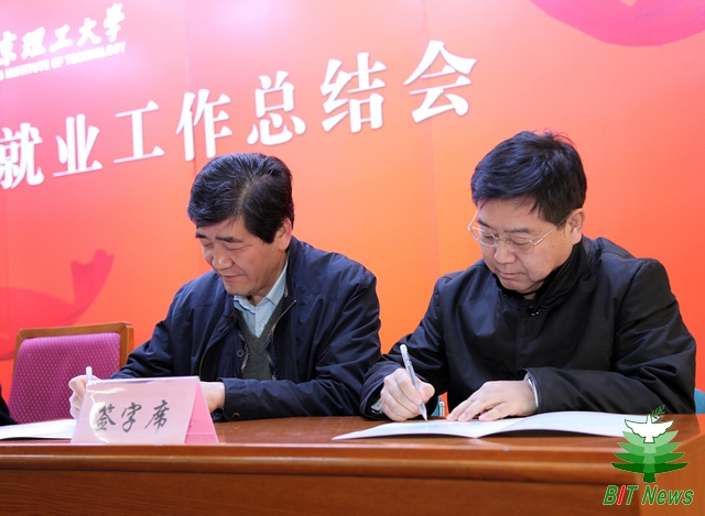 会上,赵显利代表学校与学院代表、机械与车辆学院党委书记阎艳、人文社会科学学院党委书记张红峻签订了《beat365中文官方网站2013年就业工作目标责任书》。