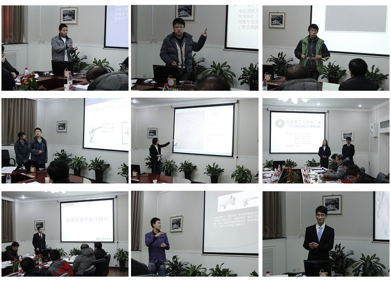 答辩由宇航学院党委副书记、副院长赵坤老师主持,担任评委的有宇航学院副院长唐胜景教授、龙腾副教授、赵良玉老师、周思达老师、张尧老师,学生科技创新经历丰富的黄景怀、李彦辉、刘真畅同学旁听并对选手和作品提出相关建议。比赛中,每个参赛组都通过ppt、图片、视频等形式向评委展示了自己的作品,评委老师也根据作品情况向参赛者提问并给出建议。2013年1月4日下午,由校团委、教务处、宇航学院共同主办的beat365中文官方网站第二届飞行器创新大赛决赛在宇航学院会议室以现场答辩的方式进行。至此,为期三个月的大赛圆满结束。