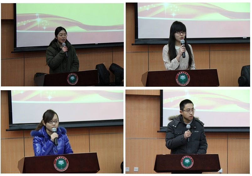 随后,进步奖学金获得者孙启宇同学分享了学习进步的心得。国家奖学金获得者、暑期社会实践优秀个人宋爱娴同学介绍了如何开展社会实践与课外学术研究的经验。徐特立奖学金获得者贾小刚同学发言,从“发现问题”“阐述问题”“解决问题”三位一体的学术研究思路分享了自己学习的体验。