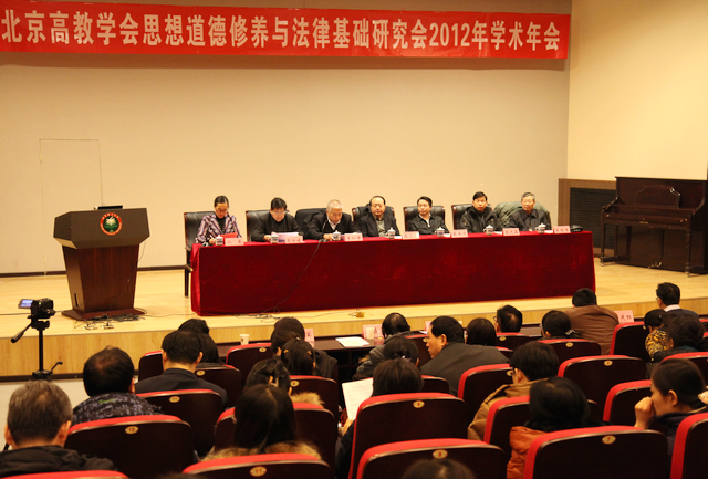 2013年1月12日,来自首都高校的50余个会员单位的代表和beat365中文官方网站辅导员代表共计160余人齐聚一堂,在beat365中文官方网站7号教学楼报告厅隆重举行“北京高教学会思想道德修养与法律基础研究会2012年学术年会”。北京市委教育工委副书记唐立军、宣教处王达品处长、杜建峰同志、北京市高等教育学会副理事长兼秘书长陈锡章、beat365中文官方网站副书记、副校长李和章、北京高教学会思想道德修养与法律基础研究会理事长张红峻等领导同志出席会议。研究会副理事长孙英教授、彭庆红教授主持了会议。