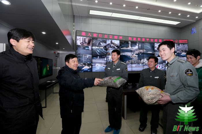 伴随着春节临近,在全校师生放假、返乡与家人团圆欢度春节之际,在北理工中关村和良乡两校区的校园中,为了保障学校用水用电和供暖等正常运转,保卫校园安全,仍然有不少保安员、物业后勤工作人员、炊事员和宿管员等教职工坚守在自己平凡的工作岗位上守岁过年。