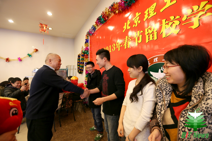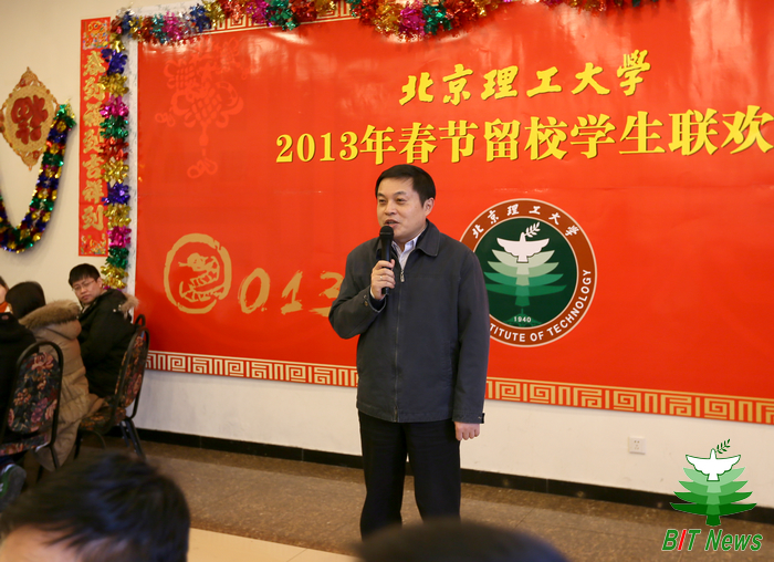 胡海岩校长首先祝福beat365所有留京过春节的同学们节日愉快、蛇年大吉!他在新年贺词中回顾了beat3652012年在教学和科研工作中取得的成绩,对同学们的进步表示祝贺,同时希望同学们和学校一起展望2013年,共同努力建设学校更美好的明天,他祝愿同学们这个离家在外的春节同样能够感受到家庭的温暖,过一个快乐的新年。