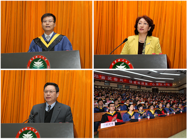 光电学院李艳秋教授代表研究生指导教师,将自己对学生的留恋和牵挂,化作感激和殷切期盼:感谢同学们为国家建设和北理工发展在教学和科研活动中做出的贡献;期盼同学们为了“中华民族伟大复兴”与“中国梦”的实现,努力进取、追求卓越,成为栋梁之才。希望同学们和母校、导师保持联系,常回家看看。