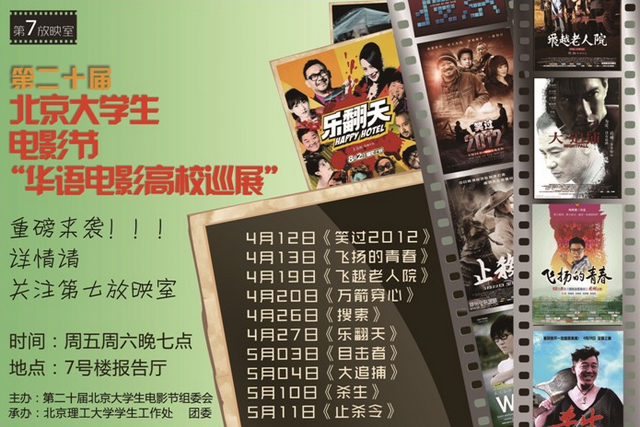 2013年5月11日晚,由第七放映室承办的第二十届北京大学生电影节“华语电影高校巡展”圆满落下帷幕。