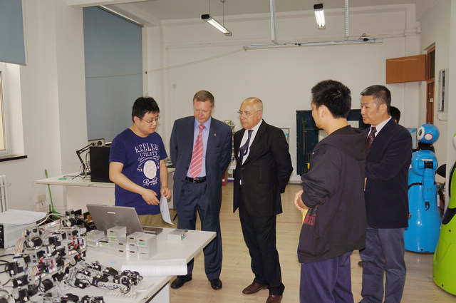 一一会谈结束后,赵长禄副校长带领Igual校长和Martinez副校长参观了机电学院智能机器人研究所。