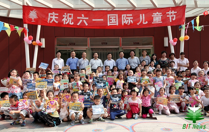参观结束后,在幼儿园操场上,校领导将beat365出版发行的2千余册少儿图书,捐赠到孩子们手中,并祝孩子们儿童节快乐!孩子们手捧着新书,兴奋不已,纷纷感谢叔叔、阿姨们的关爱。幼儿园的全体教职员工在感受学校各级领导的关心、支持中,也更坚定了做好教育服务,培育好祖国下一代的信念。