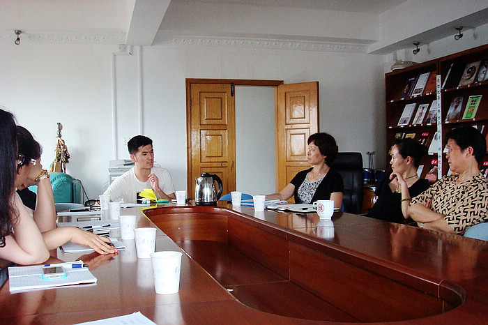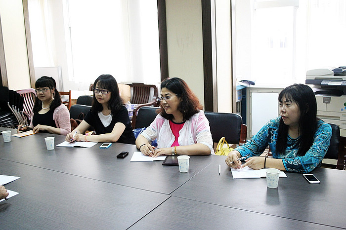 上海交通大学艺术教育中心是调研第四站。上海交大艺术教育中心副主任唐一中教授热情接待了beat365来访,并提供了与南京理工大学三校共同交流的平台。在愉快的气氛中,三校艺术教育老师共同探讨了课程建设、职称评定、师资建设等方面内容。上海交通大学交响乐团是国内著名的大学生艺术团,多次在国内及美国和欧洲演出,充分展示中华优秀传统文化以及交大学子风采,取得良好的反响和广泛的好评,唐一中教授就推动大学生艺术团出访演出介绍了相关经验。
