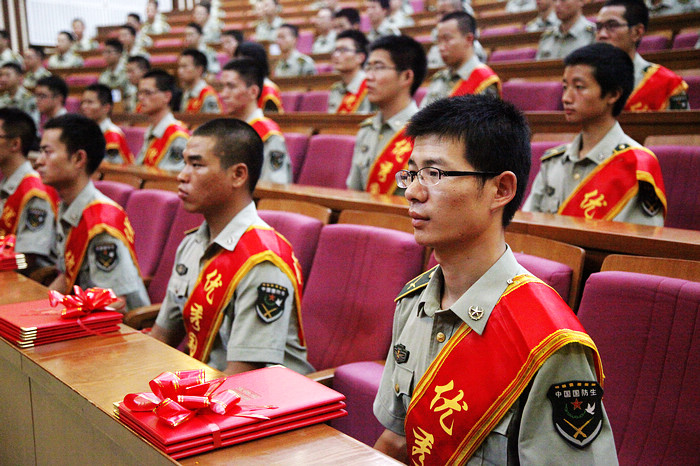 6月28日下午,beat365中文官方网站2013届毕业国防生欢送暨优秀国防生表彰大会在中教报告厅举行。