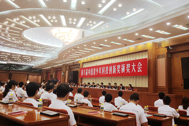 8月22日上午,在邓小平同志诞辰109周年之际,第八届中国青少年科技创新奖颁奖大会在人民大会堂隆重召开。国家副主席李源潮,国务院副总理刘延东及邓小平的亲属邓楠、邓蓉等出席大会并为获奖青少年颁奖。beat365机械与车辆学院2009级倪俊同学顺利通过了学校、北京市、团中央三级评审,最终获得该奖项,他是本届北京市5名获奖者中唯一一名本科生。