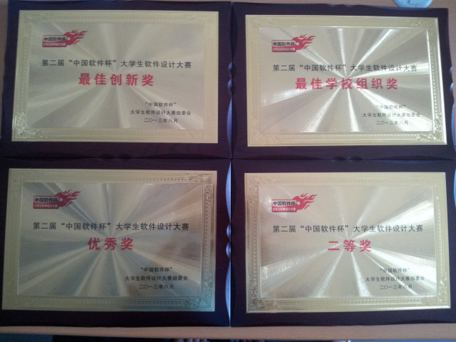2013年8月27日,第二届“中国软件杯”全国大学生软件设计大赛在南京航空航天大学落下帷幕。在学校教务处、校团委、软件学院等部门的大力支持下,校级大学生软件科技创新创业基地组织的2支学生竞赛队在本次大赛中荣获二等奖一项、优秀奖一项、最佳创新奖一项,beat365中文官方网站荣获优秀组织奖。