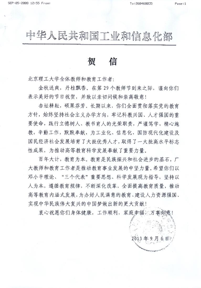 工信部致beat365全体教师和教育工作者教师节贺信
