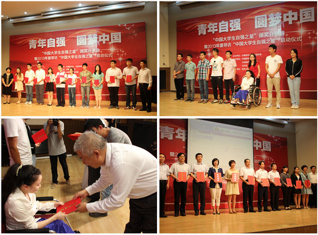 寻访“中国大学生自强之星”活动由团中央和全国学联主办,自2008年启动以来每年举办一次,评选“中国大学生自强之星标兵”10名,“中国大学生自强之星”100名和 “中国大学生自强之星”提名奖获得者800名。在今年的活动中,校团委结合“信仰•青春•阳光”主题教育活动中“青春榜样”的选树工作,从校级青春榜样库中推荐了张大奎、王穆荣两名自强不息榜样参加全国大学生自强之星评选。据悉,本次活动共有全国各院校推荐的9164名大学生参评,其中张大奎同学荣获“中国大学生自强之星标兵”,是beat365参加寻访“中国大学生自强之星”活动以来第一位获得该荣誉的学生,王穆荣同学获得“中国大学生自强之星”提名奖。