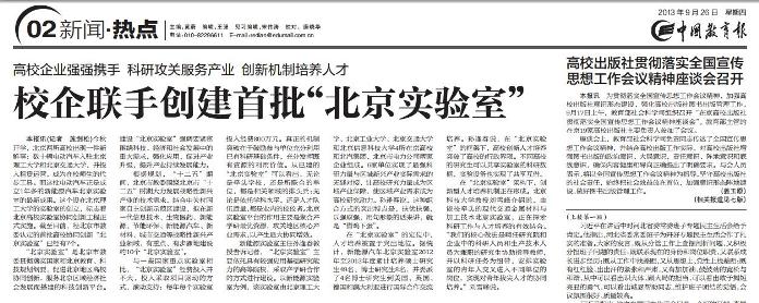 “北京实验室”是北京市教委贯彻落实国家和北京教育、科技规划纲要,促进北京地区高校协同创新,服务北京区域经济社会发展而搭建的科技创新平台。建设“北京实验室”强调要紧密围绕科技、经济和社会发展中的重大需求,强化应用,促进产业升级,提升产业持续发展能力。