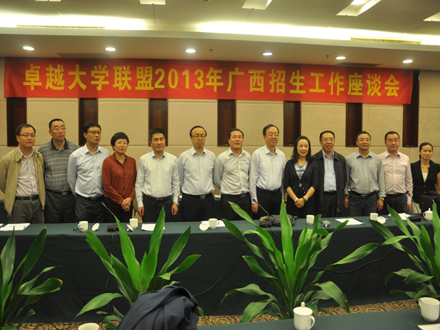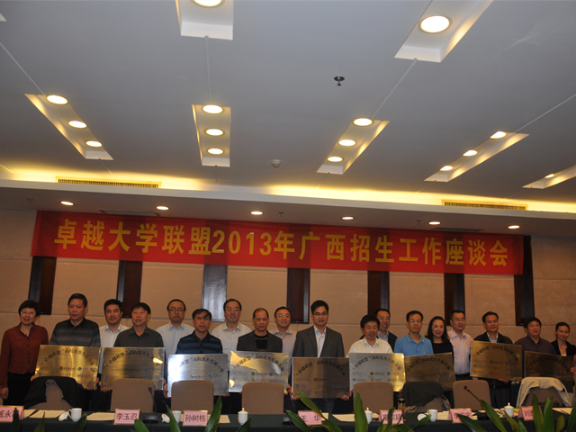 同时,卓越大学联盟九校在广西召开了第十四次招办主任联席会。会议由轮值主席西北工业大学招办主任对2013年联盟招生工作进行了总结,举行了轮值主席交接仪式,新任主席重庆大学招办主任介绍了联盟2014年主要工作。