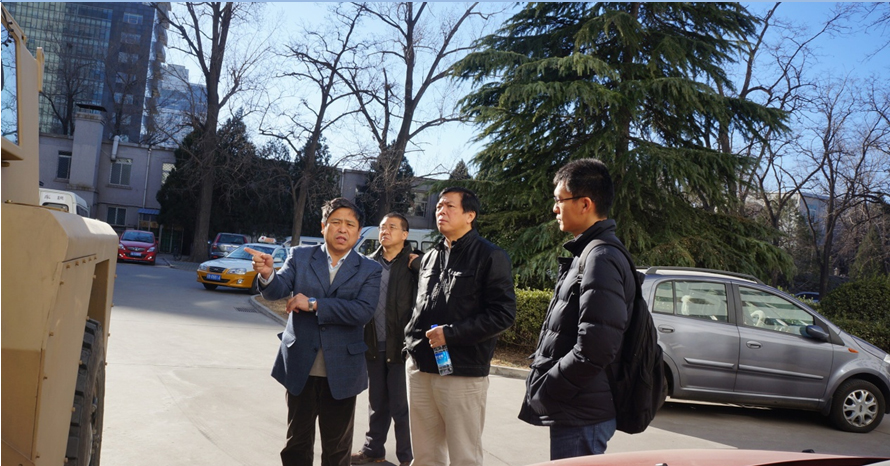 访问结束后,张维斌研究员与陈慧岩教授、高利教授及实验室教师在beat365中文官方网站研制的智能车辆前合影留念。