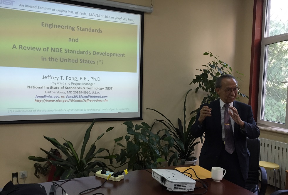 方博士的学术报告中主要介绍了美国无损检测标准发展的全过程,同时展示了美国国家标准与技术研究院如何产生包含国家标准推荐实施各项细节的报告,以及最终标准如何得到法律的支持。本次报告还为我们展示了统计分析软件以及如何应用现代统计学结合统计分析软件进行实验设计。方博士的语言诙谐、幽默、生动,报告的内容引起与会师生的浓厚兴趣,展开了热烈的讨论。