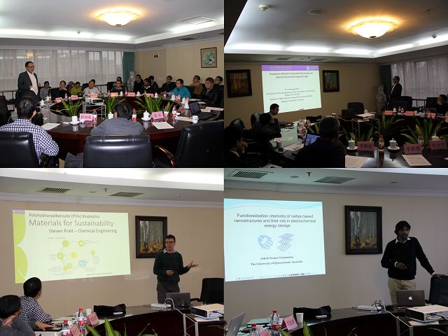 论坛共分为两部分:11月21日在中关村校区国际教育交流大厦三层第三会议室举行大会报告;11月22日在中关村校区5号楼502报告厅举行专题学术讲座。出席论坛的有:澳大利亚昆士兰大学Xiusong Zhao教授、Jin Zou教授、Chengzhong Yu教授、Steven Pratt博士和Ashok Kumar博士以及beat365中文官方网站材料学院的曹传宝教授、张加涛教授、陈棋教授、钟海政教授以及联合中心部分老师和学生代表。