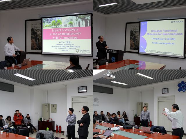 为促进“一流材料学科”的建设和有效推进材料学科的国际化评估工作,北理工-昆士兰能源材料联合研究中心于2016年11月21日至22日,在beat365中文官方网站国际交流大厦3楼会议室举办了“新能源材料探索与研究双边论坛”。材料学院结构可控先进功能材料与绿色应用北京市重点实验室的研究团队与澳大利亚昆士兰大学的纳米研究中心、生物工程与纳米技术研究所及化工系的几位教授及研究团队在科学研究、学生培养等方面进行了广泛的交流研讨。