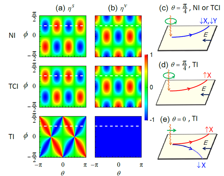 图3 单层硫化铅的不同拓扑态下出现的光选择性以及对应激发的载流子在纵向电场下出现的霍尔效应。