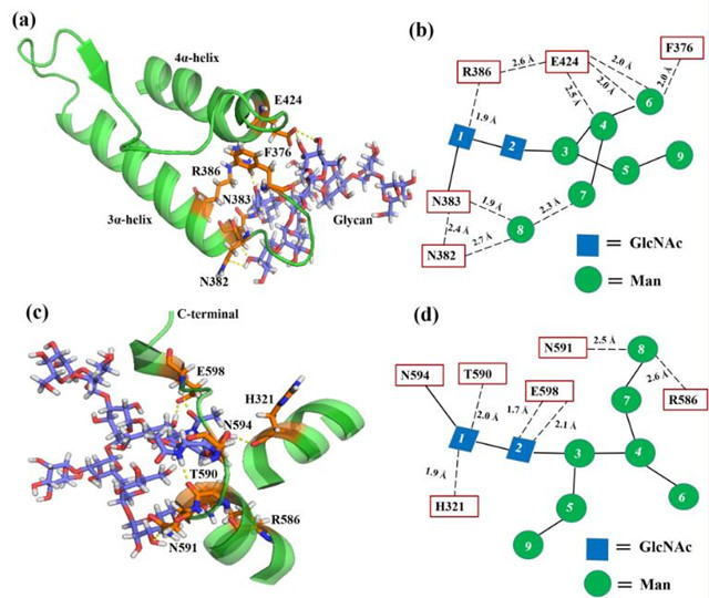 研究人员不仅从蛋白质多结构层次水平的角度对糖链和蛋白质之间的相互作用提供了独特的见解,而且促进了N-糖基化的理性设计,使其成为提高蛋白质稳定性的通用技术。相关研究发表在Journal of Physical Chemistry Letters(2018, 9, 4638−4645,IF="8.709)杂志上,该文章的第一作者是beat365中文官方网站的冯旭东预聘助理教授和王小艳博士。