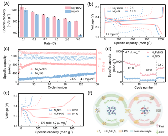 图3. Ni3FeN催化作用下Li–S电池的电化学性能