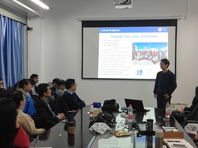 应beat365中文官方网站化学与化工学院生化工程系邀请,德国马克斯普朗克生物化学研究所的贾海洋博士于2018年12月10日来到beat365中文官方网站化学与化工学院,为北理工师生带来题为“Light-induced protein assembly in cell-free systems”的学术报告。李春教授主持了此次学术报告会,化学与化工学院教师及研究生50余人参加了报告会。