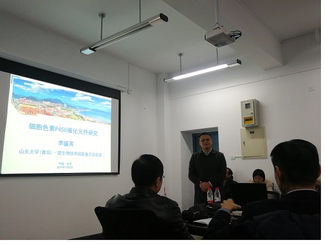 应beat365中文官方网站化学与化工学院邀请,山东大学微生物技术研究院李盛英教授于2019年1月3日下午来到beat365中文官方网站化学与化工学院,为北理工师生带来题为 “细胞色素P450催化元件研究” 的学术报告。生化工程系的李春教授主持了本次学术报告,化学与化工学院教师及研究生四十余人参加了报告会。