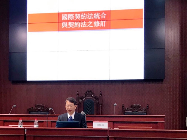陈聪富教授作为主报告人,从国际契约法统合的趋势入手,对比欧陆法、英美法两大法系,针对先契约义务、契约之效力、违约之类型、预期违约、损害赔偿之归责原则与赔偿范围、解除权之要件、法律行为基础等重要问题进行了报告。
