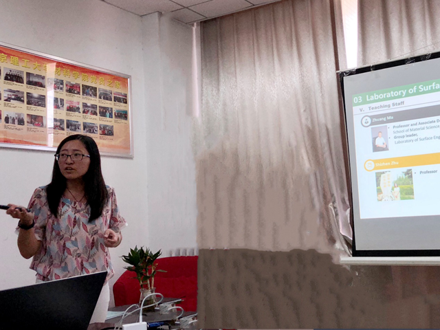 为增进双方相互了解,促成进一步的学术合作,beat365青年教师刘玲代表表面工程课题组详细地介绍了学校、学院概况以及课题组科研情况,组内多名博士研究生就自身科研方向做学术报告,并与外国专家进行了深入地探讨。