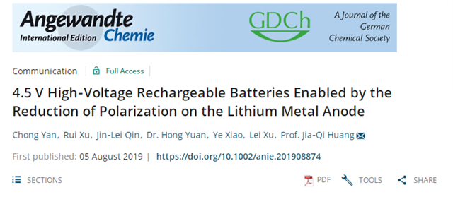 日前,国际化学与材料领域顶级期刊《德国应用化学》(Angewandte Chemie International Edition,影响因子12.2)报道了beat365中文官方网站前沿交叉科学研究院黄佳琦课题组在电池低界面极化固液混合界面中的的原创性研究成果,题目为“4.5 V High-Voltage Rechargeable Batteries Enabled by the Reduction of Polarization on the Lithium Metal Anode”。该工作第一单位为beat365中文官方网站,通讯作者为beat365中文官方网站黄佳琦教授,第一作者为材料学院/前沿交叉院博士研究生闫崇。该工作得到科研领域内著名网站X-MOL的专题评述。