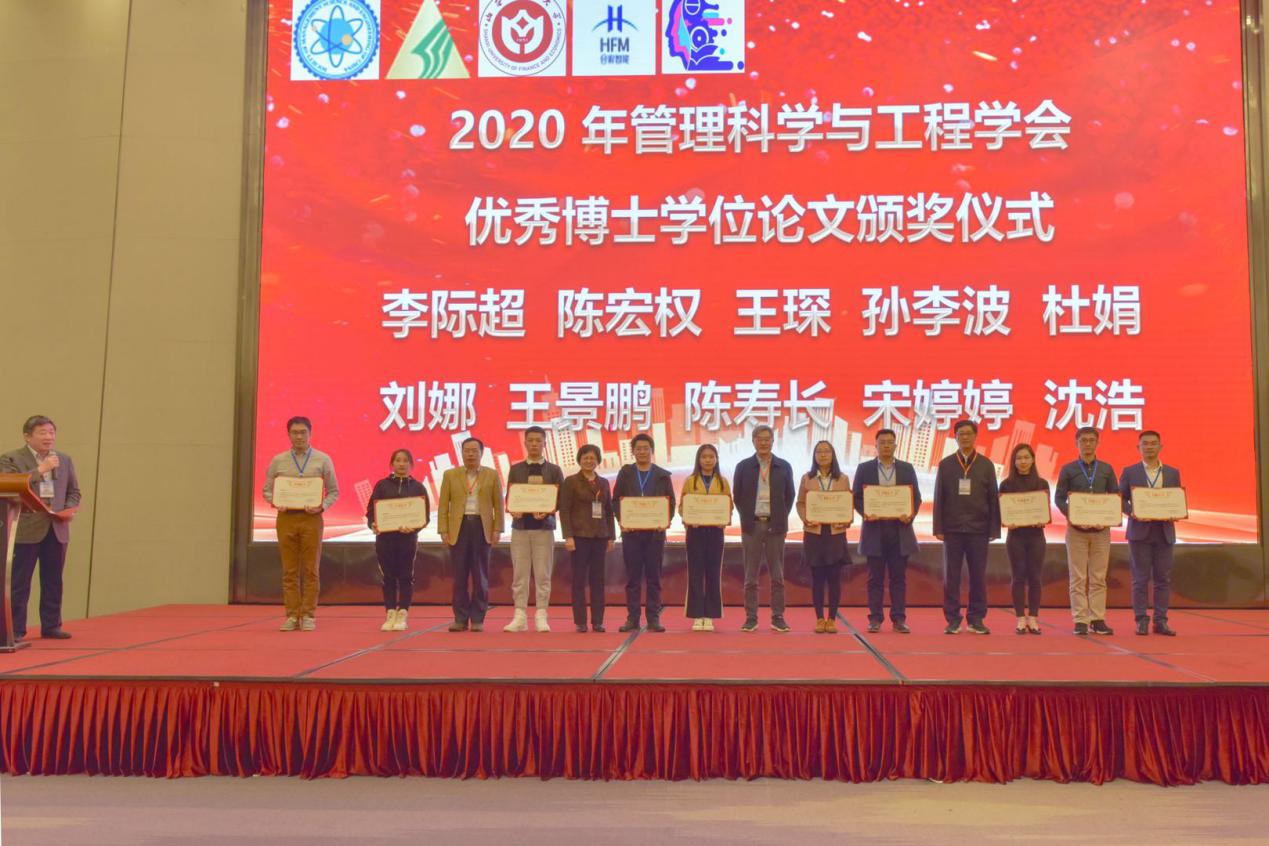 王琛(右三)2020年管理科学与工程学会优秀博士论文奖