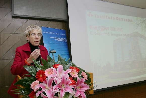 北京塞万提斯学院院长易玛• 冈萨雷斯• 布依介绍了塞万提斯学院和其在中国的发展。随后,塞万提斯学院教导主任马诺罗• 菲尔南德斯• 贡德和Pablo Robert老师分别介绍了学院课程以及为什么学习西班牙语。在互动环节中,几位嘉宾还回答了同学们提出的各式各样的问题,气氛轻松愉快。