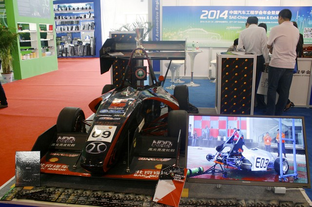 2014年4月20日,2014年北京国际汽车展拉开帷幕。作为全球最重要的A级车展,北京国际车展共吸引了14个国家和地区的2000多家厂商参加,共展示车辆1134台。在中国国际展览中心为期10天的展示过程中,比起豪车馆中的座上宾,或是奔驰、宝马这些万众瞩目的车型,展馆中有着这样一道同样吸引眼球的别样风景线——由北理工大学生亲手打造的方程式赛车“黑鲨IV”。