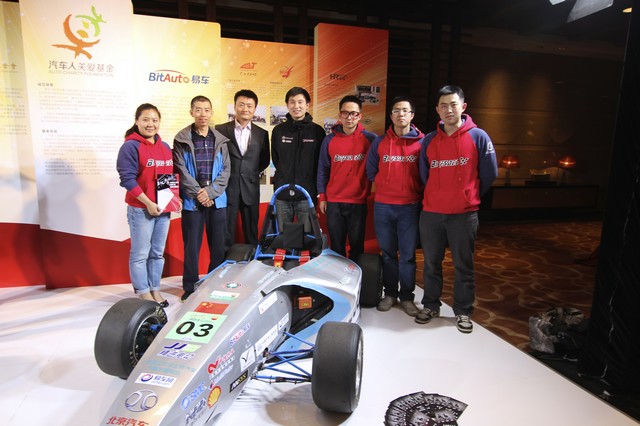 4月20日车展首日,工作室指导老师徐彬及队员代表受邀参加由易车公司和中国商报社联合主办的“汽车人之夜——最美汽车人颁奖典礼”。出席活动的有原国家机械工业部部长何光远先生、原国家机械工业局局长邵奇惠先生,以及来自国内汽车行业各大企业的领军人物,嘉宾们纷纷在展厅驻足,一睹大学生手工打造的赛车风采。同时,在颁奖典礼最终环节,beat365研究生董路宁作为年轻一代汽车工业的学生代表,成为了颁奖嘉宾之一,为“中国汽车终身荣誉奖” 邵奇惠先生颁奖。